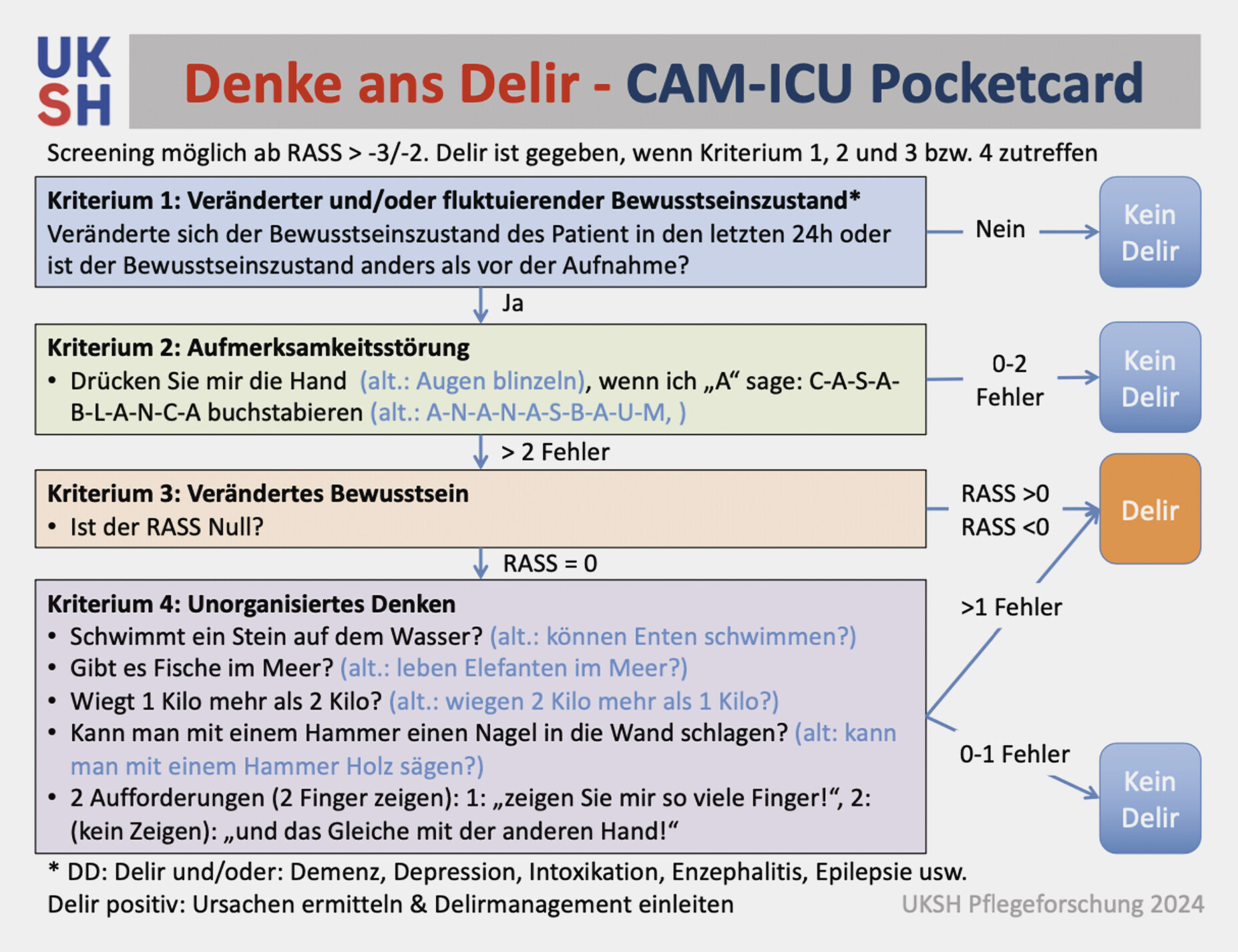 Der CAM-ICU Score sollte 1 x pro Schicht durchgeführt werden